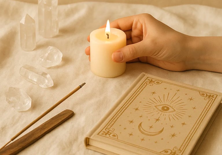 Encuentros que transforman. Aprende, experimenta y conecta con herramientas poderosas para tu crecimiento personal. Velas, intuición y una mesa que invita a descubrir lo que llevas dentro.